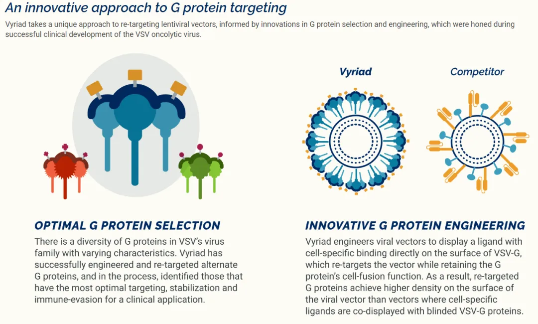 Vyriad的慢病毒平台利用工程G蛋白实现精确、直接的体内CAR递送,而不会影响转导效率。通过将高特异性和血液稳定性与降低的免疫原性相结合,这种方法消除了复杂的体外制造。其结果是一种可扩展的解决方案,显著扩大了患者获得CAR-T疗法的机会。VV169是首批利用该平台的体内CAR-T候选物之一,将工程CAR转基因与优化的慢病毒递送载体LV-169相结合。它正在开发为针对多发性骨髓瘤恶性细胞上的B细胞成熟抗原(BCMA)蛋白的单次静脉给药。在2025