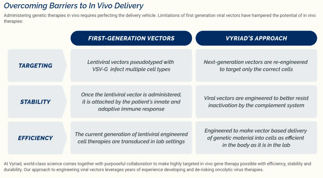 Farfield Partners管理合伙人兼Vyriad董事会主席Ed Kania表示:“最后一笔交易的完成反映了投资者对Vyriad团队的信心,该团队继续专注于基于其一流技术改善患者护理。该团队的能力已经通过我们与Regeneron和诺华的合作项目得到了证明,越来越明显的是,该公司的递送平台在直接在体内靶向重编程免疫细胞方面具有差异化的能力,这一进步可能会大大拓宽CAR-T疗法的使用范围。我们对我们全资拥有的体内CAR-T疗法潜力持乐观态度,该疗法将于2026年进入临床。”