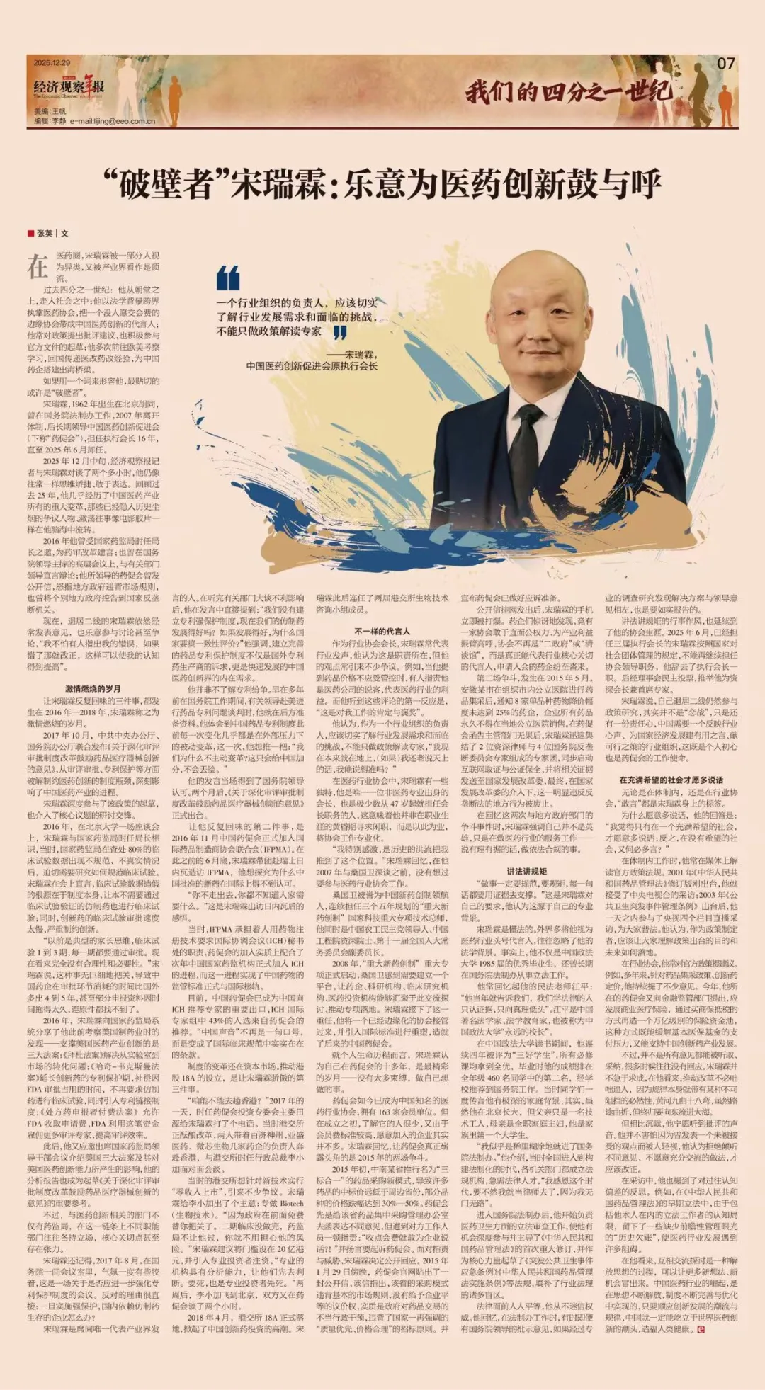 2025年12月中旬,经济观察报记者与宋瑞霖对谈了两个多小时,他仍像往常一样思维矫捷、敢于表达。回顾过去25年,他几乎经历了中国医药产业所有的重大变革,那些已经隐入历史尘烟的争议人物、激荡往事像电影胶片一样在他脑海中流转。