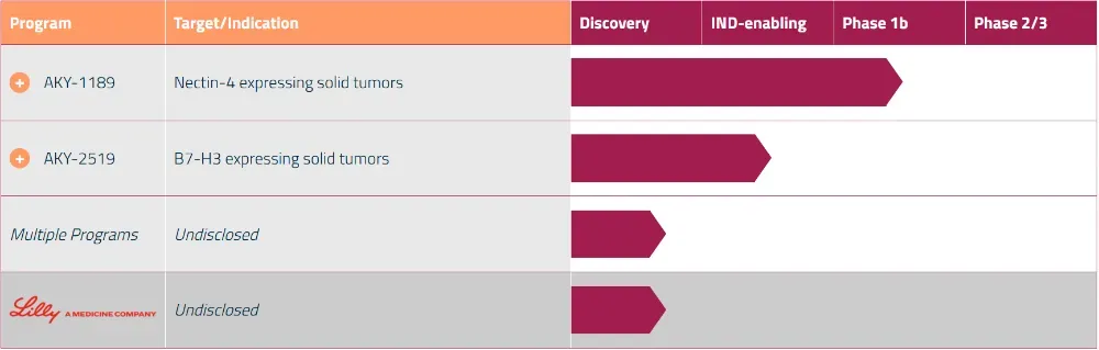 目前基于该平台,Aktis开发了有四条管线,最快的管线为AKY-1189,一种靶向Nectin-4的RDC,目前正在美国开展Ⅰb期临床试验(NECTINIUM-2),用于治疗Nectin-4实体瘤,初步数据预计2027年一季度公布。