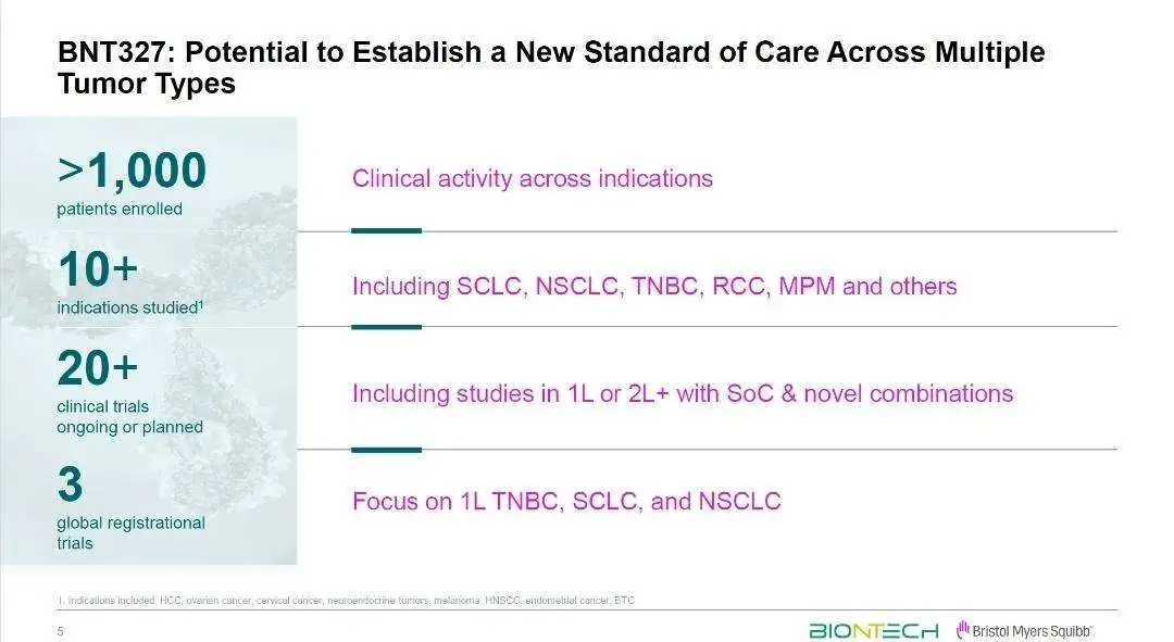 这笔投资给BioNTech带来了丰厚回报。今年6月,BMS向BioNTech抛出橄榄枝,豪掷111亿美元获得该药的全球合作开发和商业化权利。临床方面,9月,该司公布了一项全球Ⅱ期临床试验的数据,结果显示, pumitamig(BNT327)与标准化疗联合使用,在广泛期小细胞肺癌(ES-SCLC)患者中取得了76.3%的确认客观缓解率(cORR),疾病控制率(DCR)则达到了100%,与此前在2025年欧洲肺癌大会(ELCC)上公布的在中国开展的Ⅱ期临床试验数据整体一致,现已获FDA治疗SCLC的孤儿药认定。