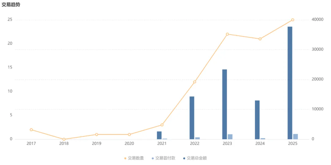 2025 年,ADC 继续成为全球 BD 交易主线之一,国产 ADC 出海硕果颇丰。根据 Insight 数据库医药交易板块,今年(截至 12 月 29 日)国产 ADC 已达成 25 项 license-out 合作,披露的交易总金额高达 377 亿美元,披露的首付款总额为 17.72 亿美元,均创历史新高。