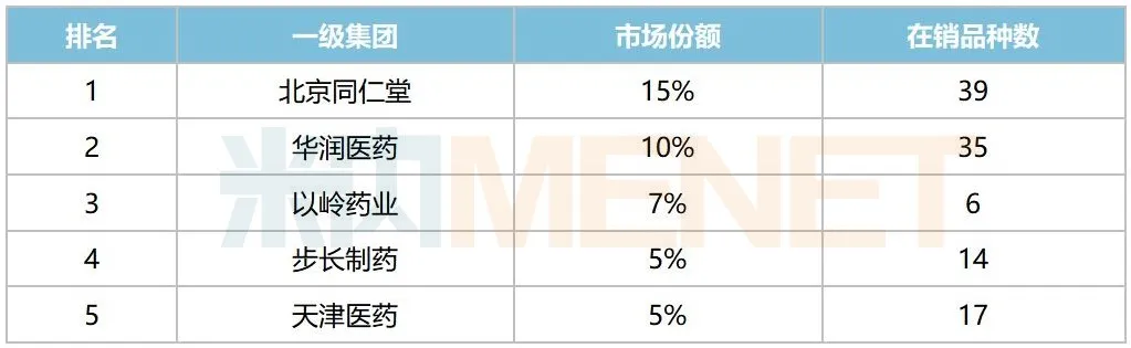 来源:米内网中国公立医疗机构药品终端竞争格局