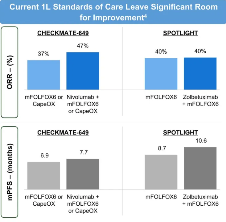这一成果不仅刷新了CLDN18.2靶点疗法的临床纪录,更是目前一线胃癌治疗领域已观察到的最佳PFS数据——相比O药联合化疗方案7.7个月的PFS(源自CheckMate-649研究),延长幅度超一倍,因而引发市场高度关注。