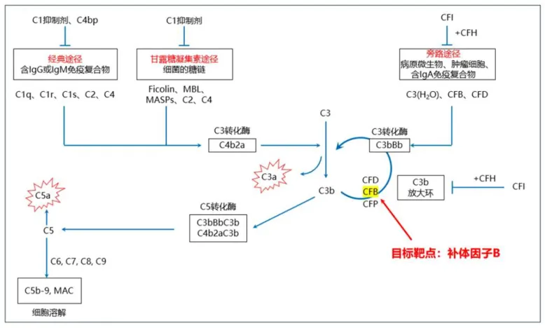目前,靶向CFB药物已经有诺华的小分子抑制剂伊普可泮实现商业化,被视为最有前景的IgA肾病口服药物之一,其能够特异性抑制CFB蛋白,减少C3、C5和MAC的形成。
