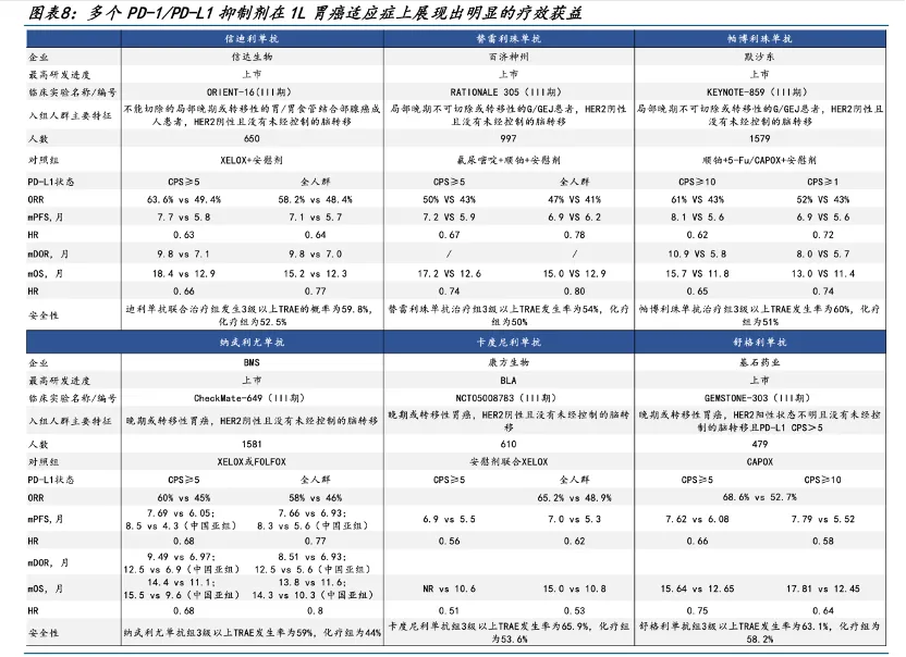 只是,近年来,多项大型临床试验证实,免疫检查点抑制剂联合化疗可改善胃癌患者的预后,其中就包括百时美施贵宝(BMS)的纳武利尤单抗、信达生物的信迪利单抗等。全球指南的推荐方向,也均指向了这些免疫联合疗法(IO联合疗法)。