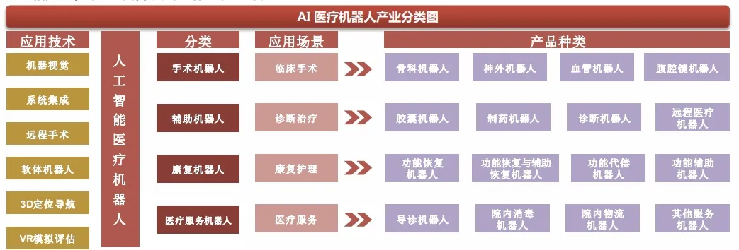 手术机器人则是一套完备而精确的医疗设备,基本上是把外科手术台上的所有工具及操作集成在一套机器上面。