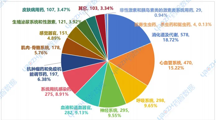 从治疗领域看,药品批准数量呈现领域集中化特征,慢性病与常见病领域成核心方向。