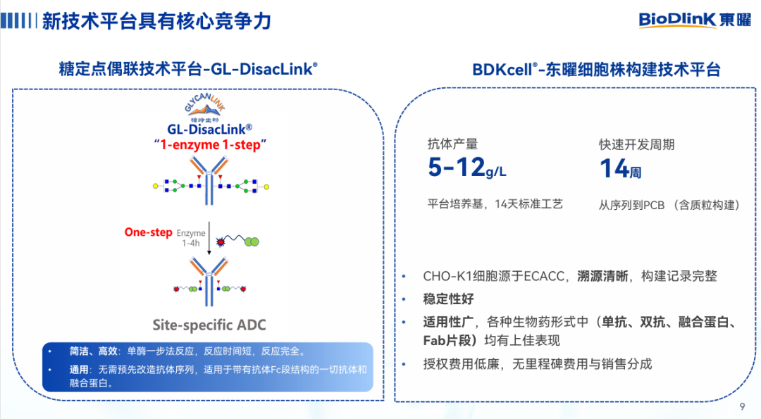 L;公司已搭建ADC一体化平台,具备核心研发技术优势,可实现ADC抗体/抗体中间体、原液、制剂等关键生产环节集中一地完成,降低转移成本并减少监管风险;目前,公司已建立符合商业化生产的质量管理体系,并已支持多个上市产品的商业化生产。东曜药业拥有成熟稳定的核心团队以及良好的服务口碑,向客户提供品质卓越的专业服务。