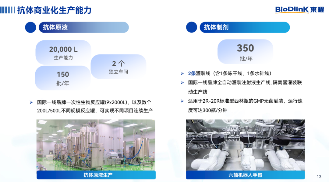 东曜药业与国内外制药公司开展多元的战略合作,提供药物开发生产一站式CDMO解决方案,帮助客户加速生物药特别是抗体偶联药(ADC)的开发和生产,赋能产业高质量发展。东曜药业拥有符合GMP规范的大规模生物药商业化生产基地,配备多条完整的上下游产线,总产能已突破20,000