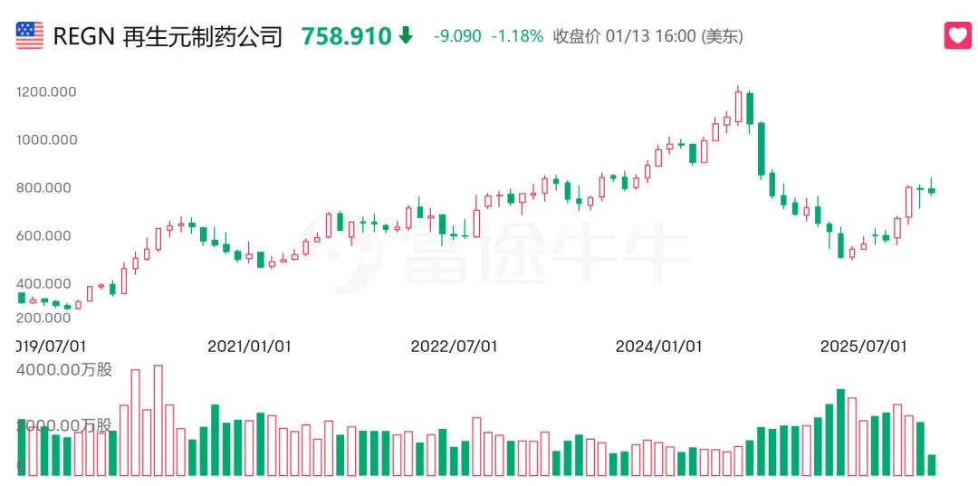 尽管度普利尤单抗在2024年已经成为自免领域的“药王”,但再生元的专利悬崖压力来自于另一款支柱产品阿柏西普,这种危机传导可以反映到公司股价上。