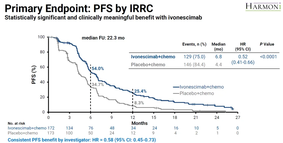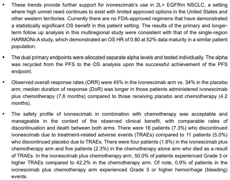 根据此前公布的数据,HARMONi三期临床达到PFS终点,mPFS从4.4个月延长到6.8个月,HR=0.52。