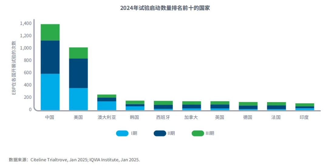目前,中国和美国是开展EBP试验最多的两个国家。