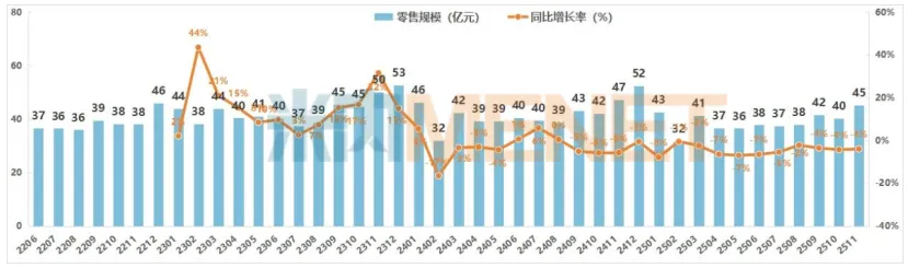2025年11月中国实体药店市场零售规模及变化趋势
