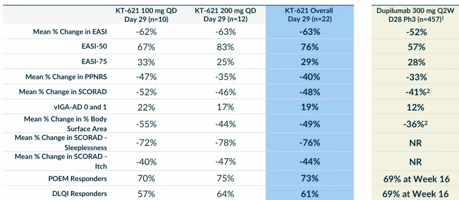 目前在已经公布AD临床早期数据的口服创新药中,Kymera的STAT6降解剂KT-621应该也是对Dupi产生最大威胁的候选管线之一,同样目前大量TYK2抑制剂也同样是一个可以比较的对象。