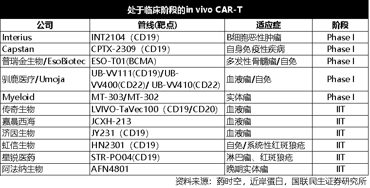 目前已有包括普瑞金生物(ESO-T01)、传奇生物(LVIVO-TaVec100)、嘉晨西海(JCXH-213)、济因生物(JY231)以及虹信生物(HN2301)在内的多家中国企业推进其In