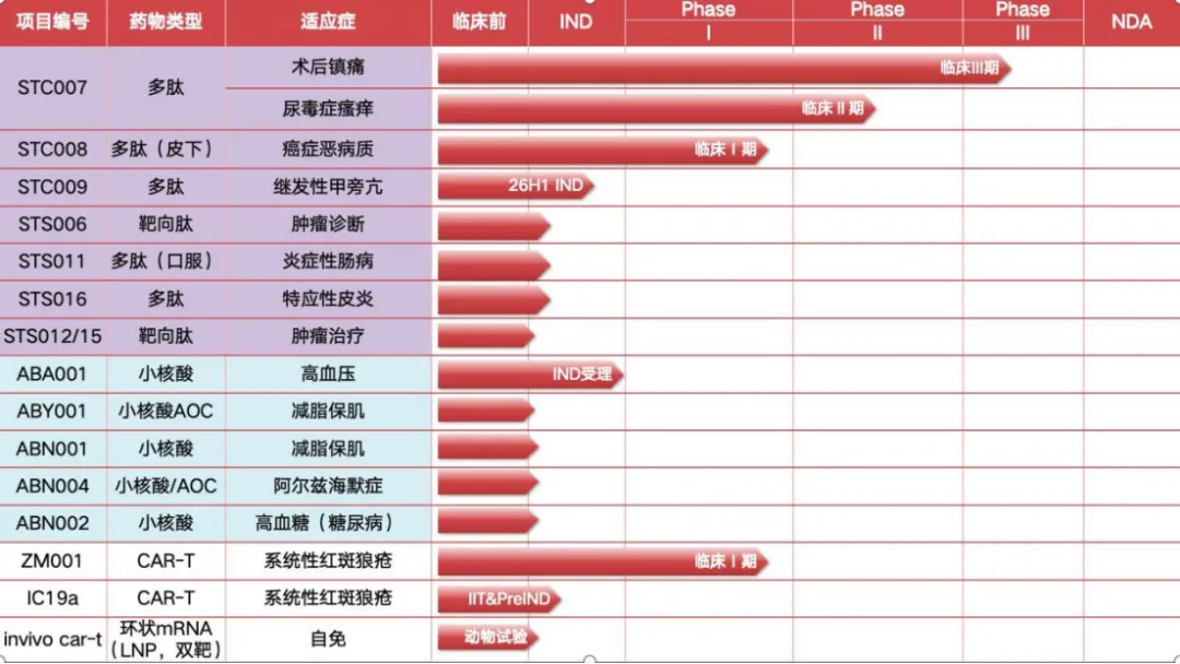 2026年开年以来,公司喜讯连连,显示出创新转型成果已经进入收获期。具整体而言,在创新药管线布局方面,阳光诺和聚焦于具备全球自主知识产权的创新药研发工作,已布局的“AI多肽创新药研发平台”“小核酸AOC研发平台”“新型CAR-T药物开发平台”进展顺利,构建了20余种1类新药管线梯队,涉及肿瘤、疼痛管理、减脂增肌、慢病、AD、IBD、COPD等重大疾病范畴。