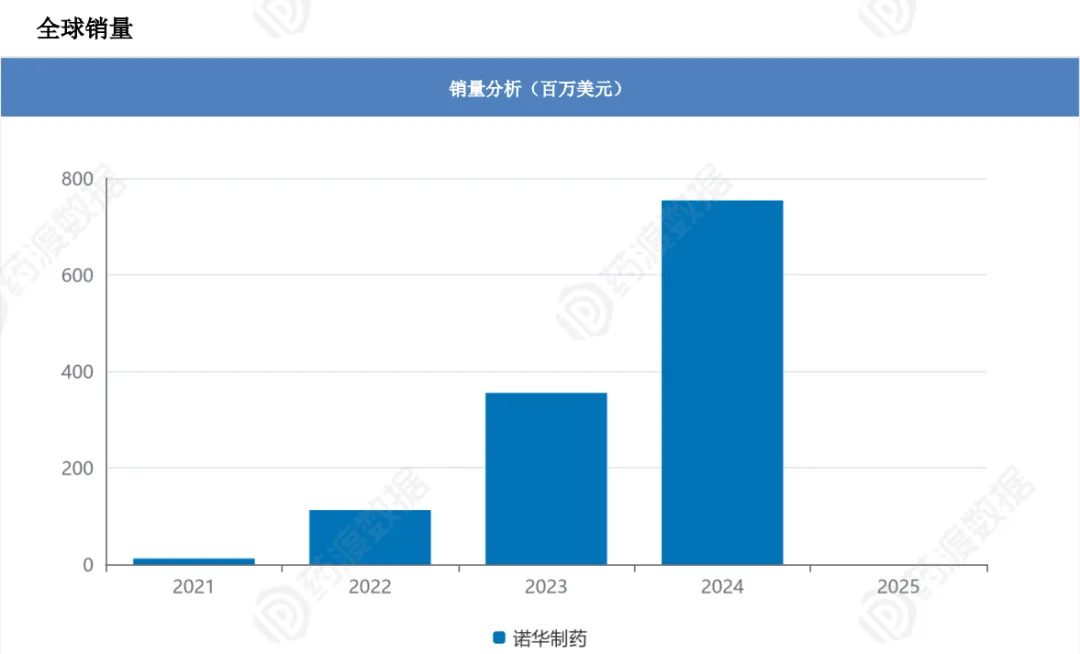 诺华于2019年以97亿美元收购The Medicines Company获得该药物,此后通过大规模临床开发与全球快速注册,已在美国、欧盟、中国等近100个国家获批,2024年全球销售额从2021年的1200万美元暴增至7.54亿美元,2025年第二季度单季度销售额达4.8亿美元,年销售峰值预测超过20亿美元,已成为诺华心血管领域第二大单品。这种爆发式增长验证了市场对于超长效、强效降脂疗法的迫切需求,也为其在中国单药市场的拓展提供了强大背书。