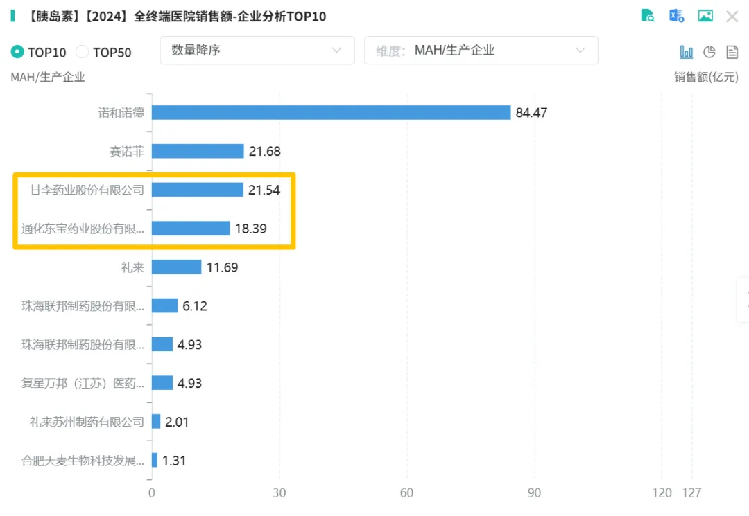在国产企业中,甘李药业和通化东宝表现最为突出,被业内并称为“国产胰岛素双雄”。
