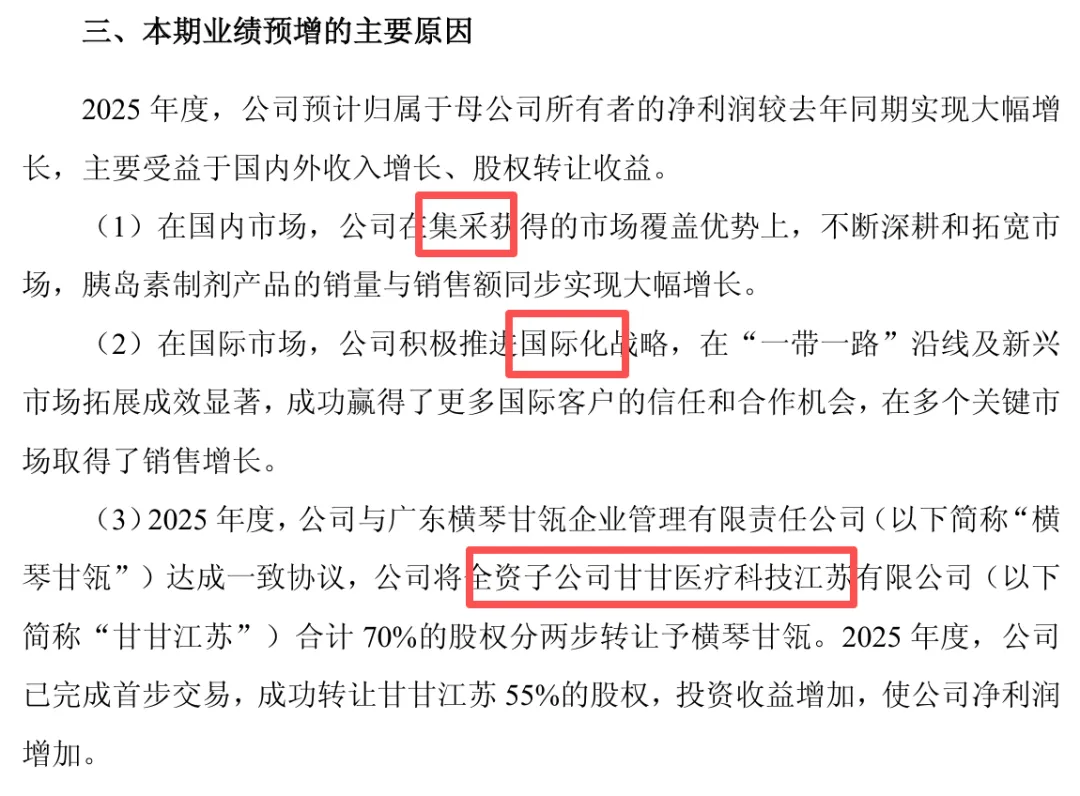 粗略来看,股权交易占利润增长很大比例,可见胰岛素集采的影响尚在。