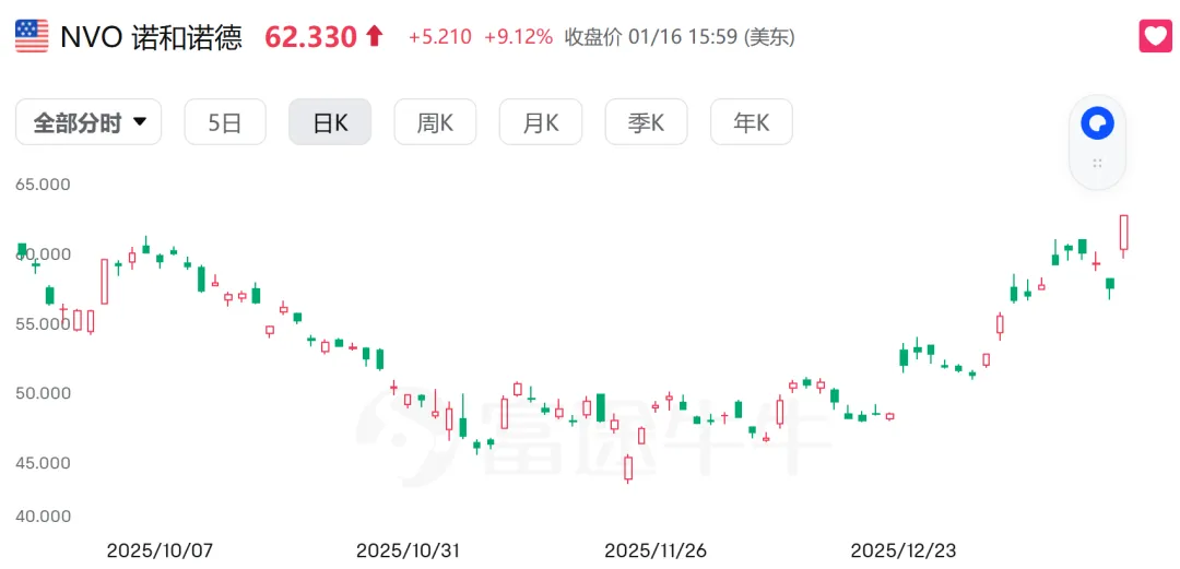 而口服司美格鲁肽一经推出,在美国市场就有卖爆的趋势,这也让市场看到了口服GLP-1的巨大潜力,诺和诺德的股价也在上周五大涨9%。