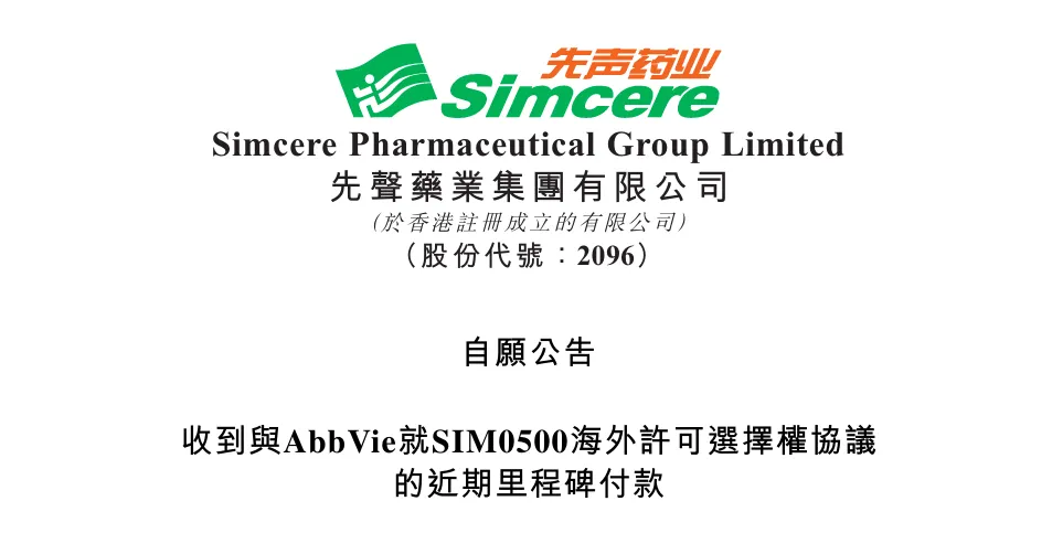 继此前已收到该协议项下首付款后,先声药业已于近期进一步收到来自AbbVie支付的4000万美元款项。该款项的支付,体现了先声药业与AbbVie围绕推进SIM0500临床开发合作的积极进展。