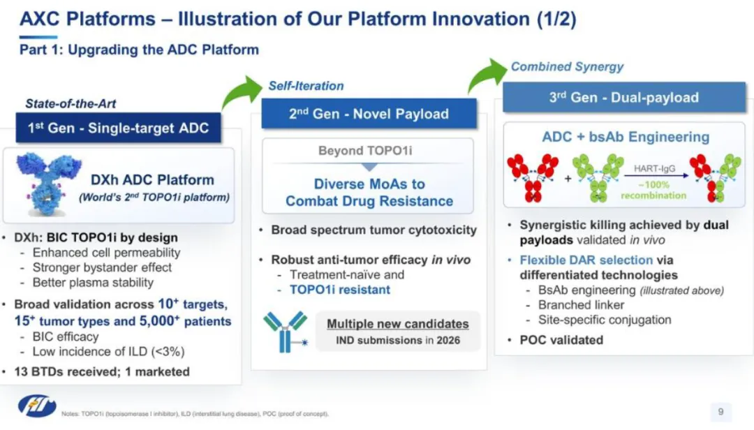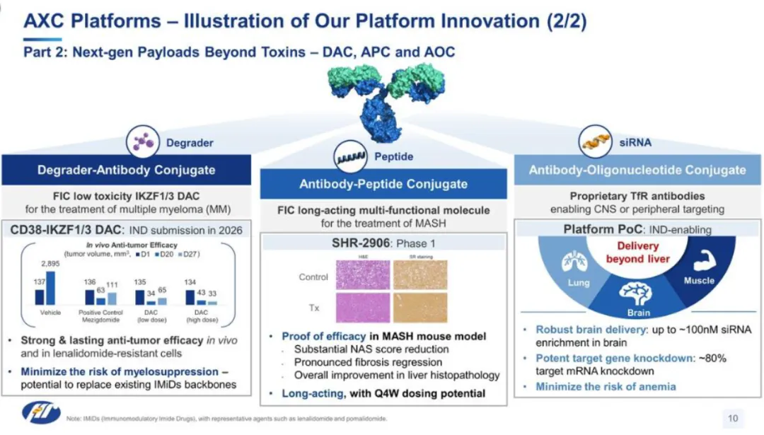恒瑞医药将ADC作为其布局重点,并积极开发下一代的新毒素ADC,以及第三代的双毒素ADC。除此之外,恒瑞医药扩展布局到DAC(抗体偶联降解剂)、APC(抗体偶联多肽)、AOC(抗体偶联小核酸)等领域。