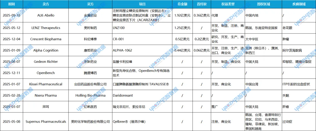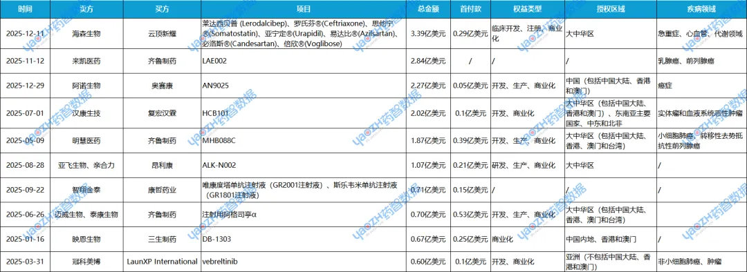 表4 2025年国内授权许可交易TOP10