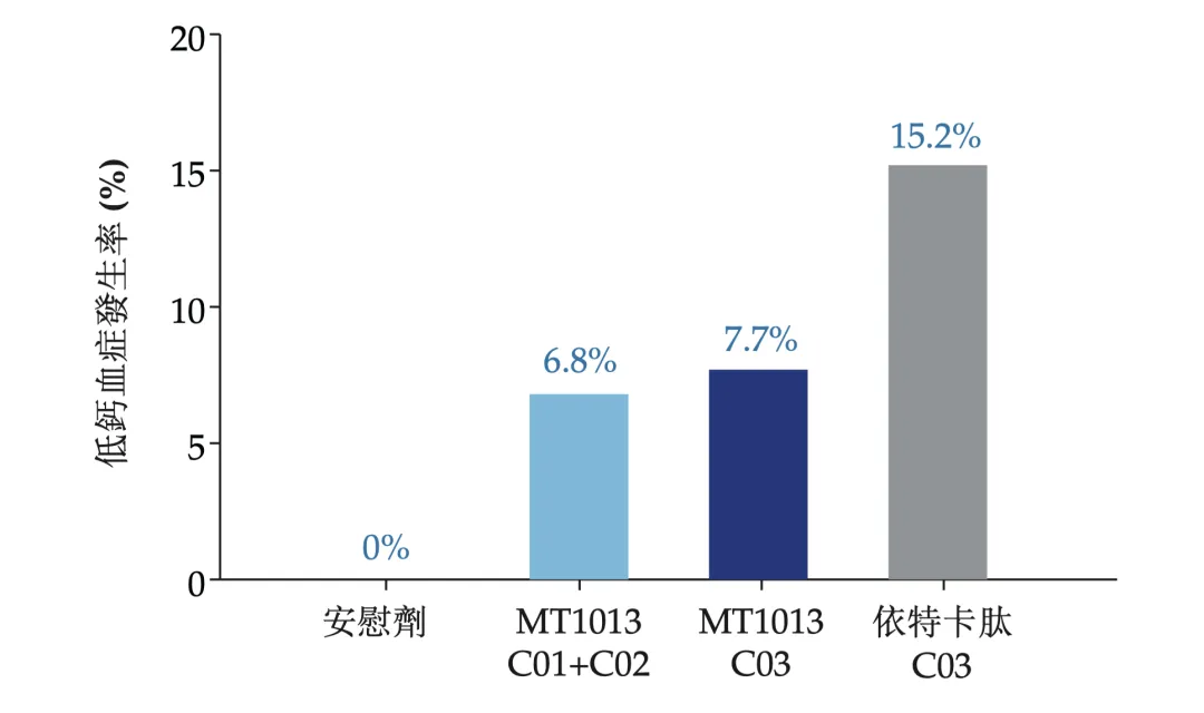 图片来源:MT1013-II-C01/C02及MT1013-II-C03研究各组低鈣血症发生率(%)