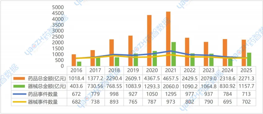 图11 2016-2025年国内器械行业融资变化趋势