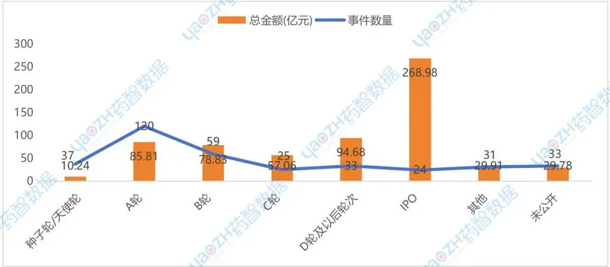 图10 2025年国内药品行业融资轮次相关数据统计