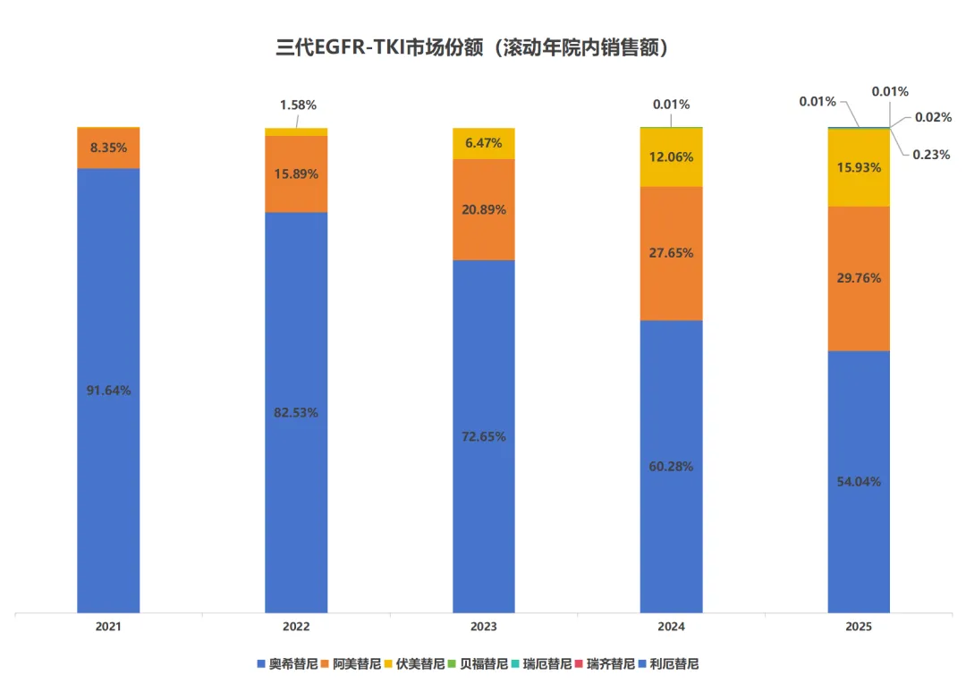 过去六年是中国原研第三代EGFR-TKI类药物的黄金增长期,成功打破奥希替尼独占格局,而且市场份额稳步提升,近乎占据半壁江山。