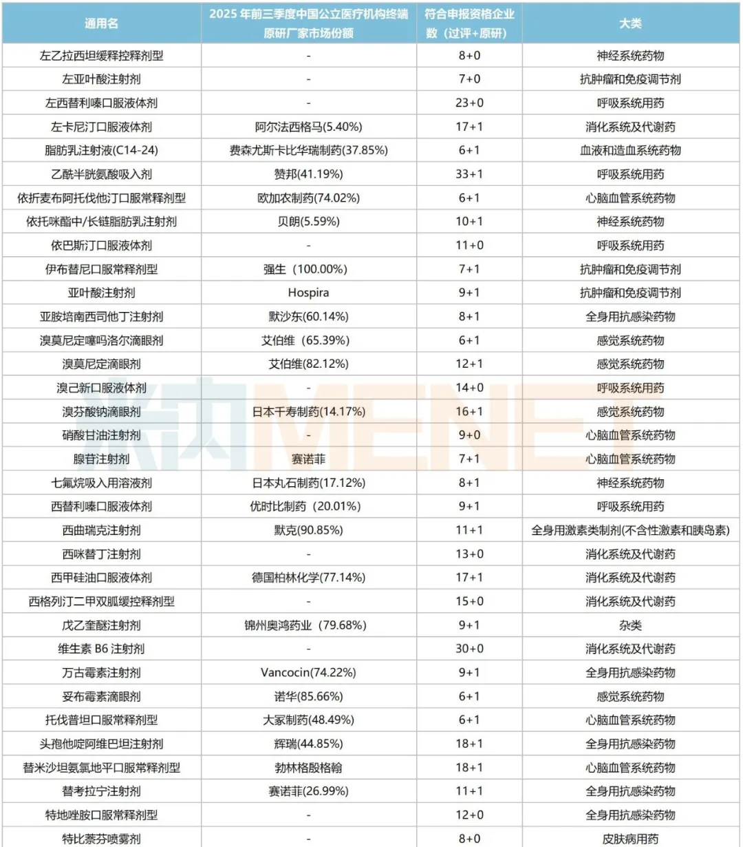 来源:米内网中国公立医疗机构药品终端竞争格局