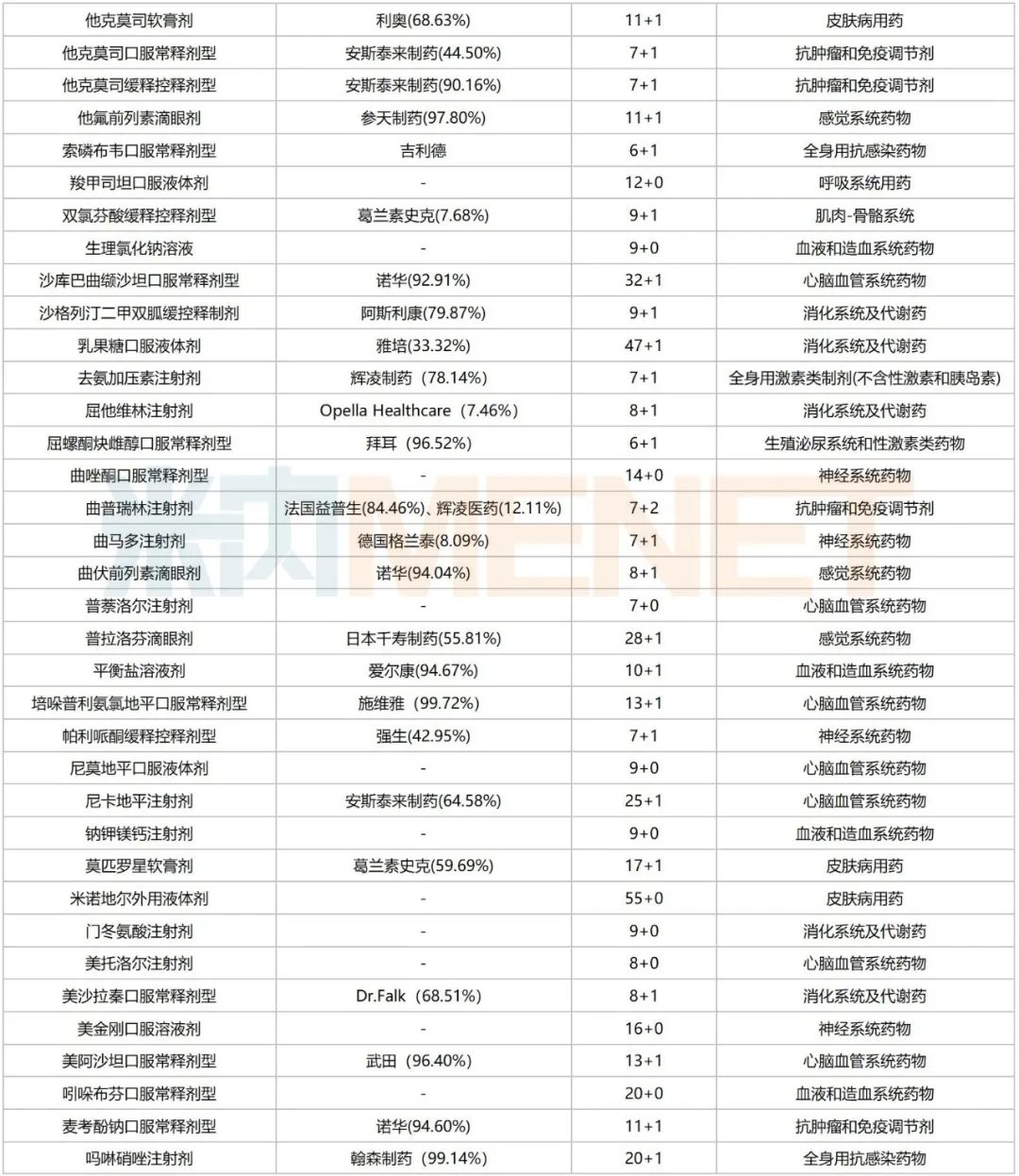 从竞争情况看,163个品种中,有20个品种“火爆”,符合申报资格企业数达20家及以上;此外,超过10家但不足20家的品种有69个,超过7家但不足10家的品种有74个。