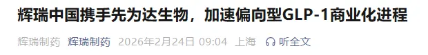 2 月 24 日,辉瑞与先为达生物宣布,双方就新一代偏向型 GLP-1 受体激动剂埃诺格鲁肽注射液(英文:Ecnoglutide injection)达成商业化战略合作协议。