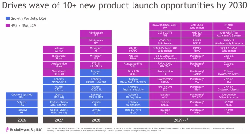 同时,在2026至2030年间,BMS计划每年推动多款FIC或BIC药物达到关键的监管里程碑,并将资源集中于那些有潜力成为数十亿美元级现金流“基石”的重磅产品上,试图在核心老药专利到期后的市场空窗期内,迅速建立起新的增长支柱。