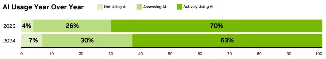 有70%的企业积极使用AI,较上一年的63%明显增长。
