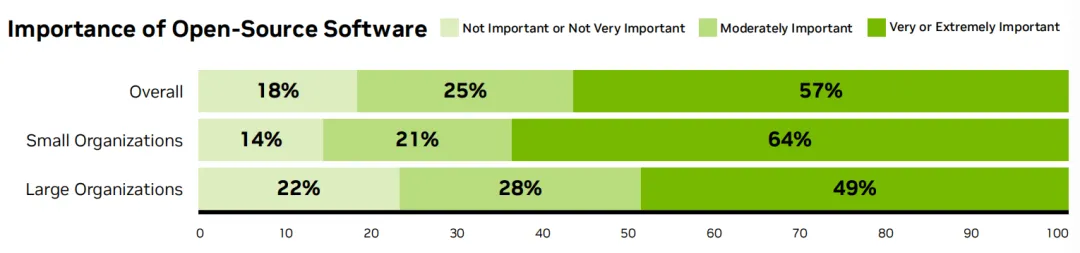 报告显示,82%的调研对象认为开源模型和软件至关重要,其中57%认为“非常或极其重要”。