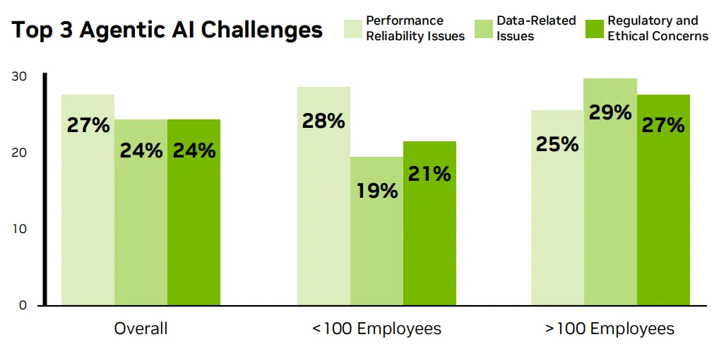 性能与可靠性(27%)、数据问题(27%)、监管与伦理担忧(24%)成为三大核心障碍。