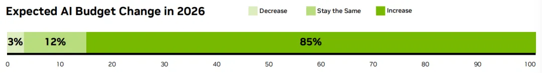85%的受访者表示他们的预算将在2026年增加,12%的受访者表示预算将保持不变。近一半的受访者表示,预算同比增长超过10%。