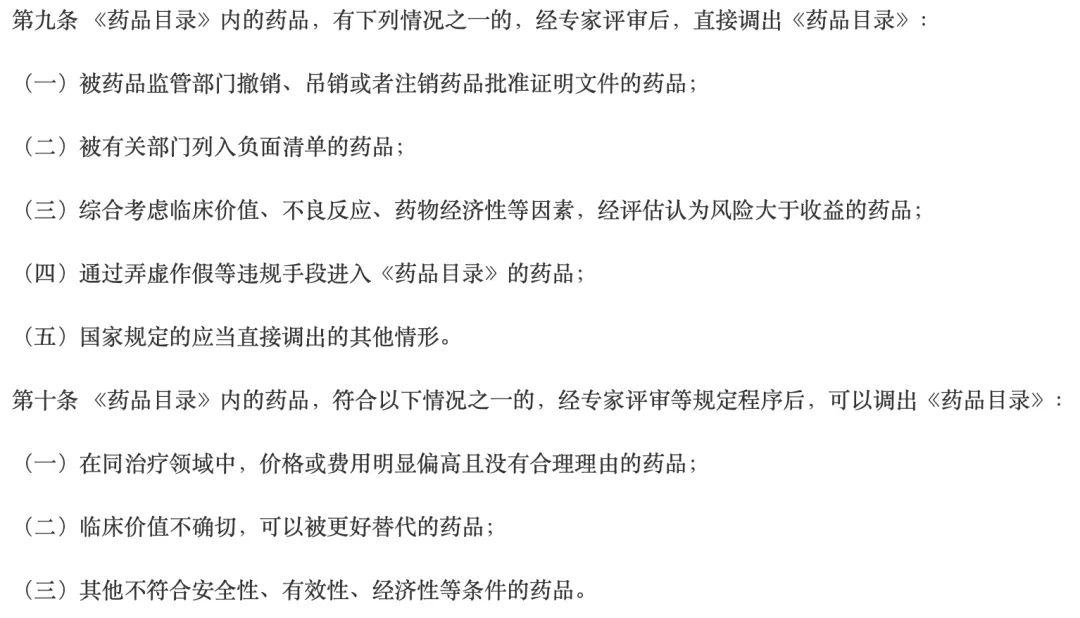 另外,《基本医疗保险用药管理暂行办法》明确提到,被药品监管部门撤销、吊销或者注销药品批准证明文件的药品;综合考虑临床价值、不良反应、药物经济性等因素,经评估认为风险大于收益的药品,会被调出。