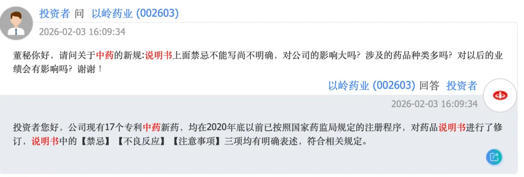 步长制药、白云山、奇正藏药、桂林三金、以岭药业、康缘制药、广誉远、东阿阿胶等诸多中药头部企业在投资者关系互动平台上均已明确,完善了相关产品说明书。