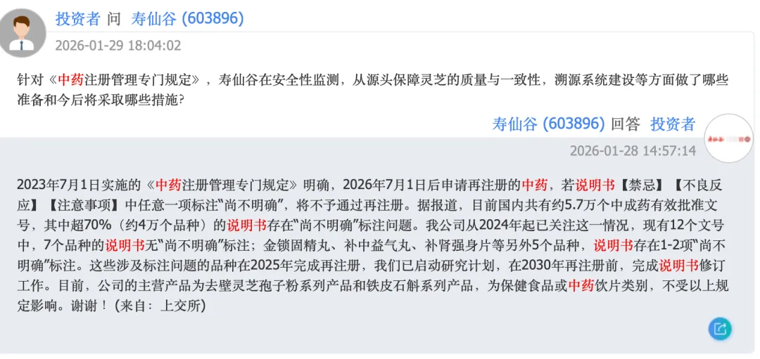 即使有的中药企业目前说明书尚未完善,结合药品注册证书5年有效期要求,仍有时间。如寿仙谷相关中成药已在2025年完成再注册,并表示已启动相关研究计划,会在2030年再注册前完善说明书修订。