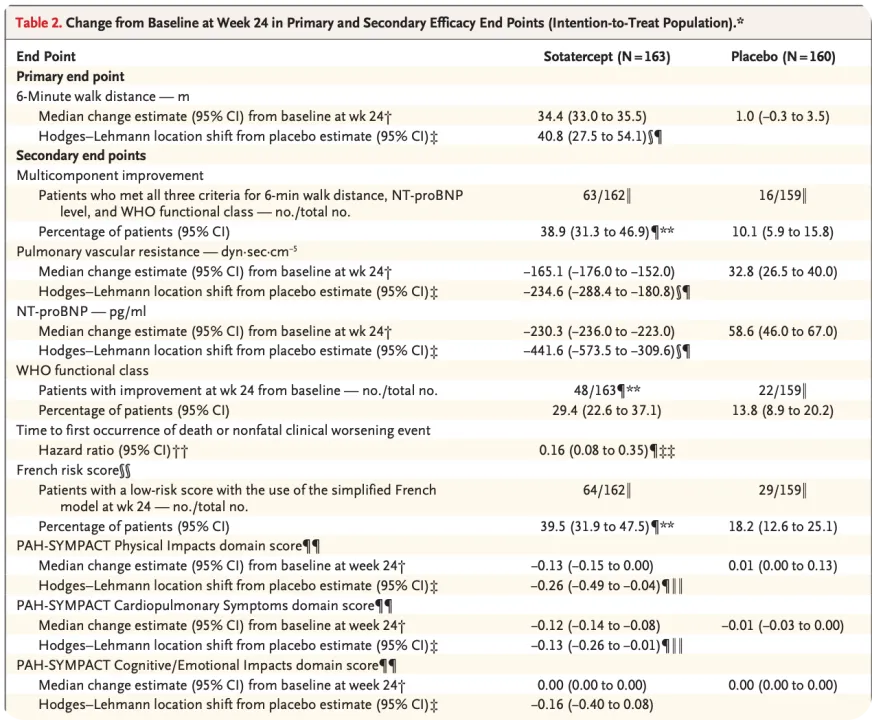 不仅在主要终点,次要终点上,Sotatercept也获得了从症状改善到生存获益的全面胜利。
