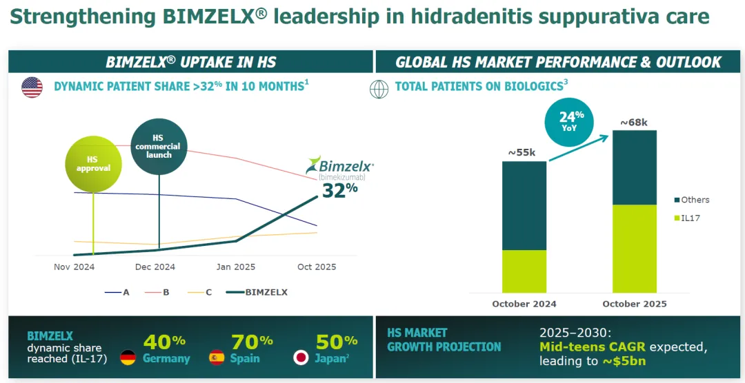 Bimzelx在美国市场的份额快速攀升,在同类产品中即将登顶首位。