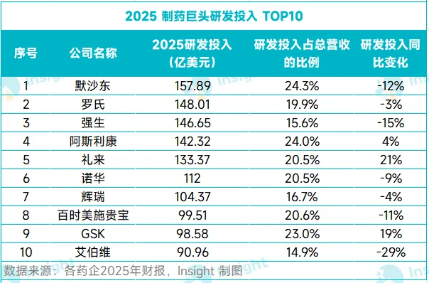 2025 年,诺华研发投入 112 亿美元,同比下降 9%。