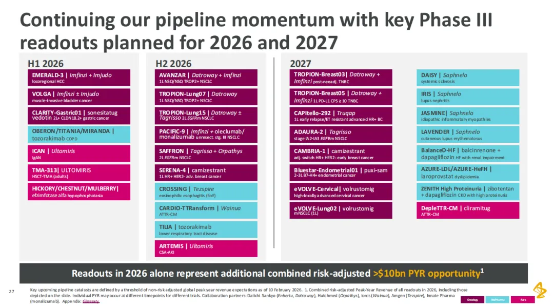 辉瑞 CEO 在财报中表示,对辉瑞而言,2026 年将是重要的一年。该公司今年将有诸多关键催化剂事件,包括计划启动约 20 项关键性临床研究,以及持续的战略投资,以最大限度地把握机遇,在这个十年末实现行业领先的增长。