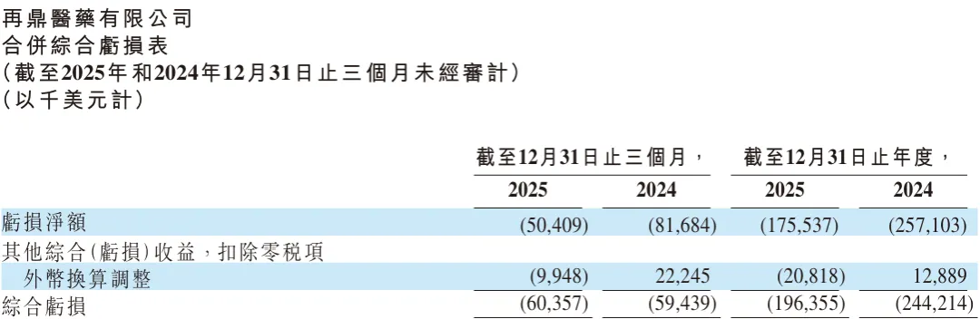图2. 再鼎医药2025年合并综合亏损表,来源:公司财报