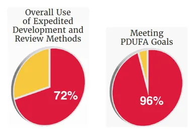 在加速创新药物上市方面,CDER在2025年广泛运用了多种加速开发与审评路径。这些机制旨在针对严重疾病或重大未满足医疗需求,提高研发与审评效率,使具有潜在临床价值的疗法能够更快进入患者可及范围。据统计,在2025年获批的新药当中,有72%的药物至少使用一种加速审批途径。