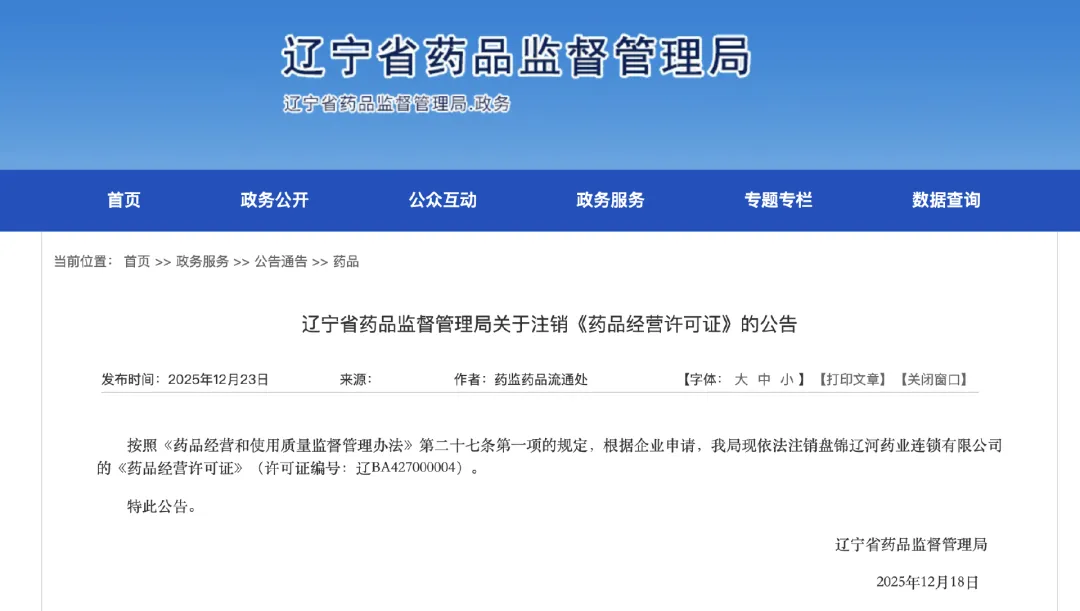 此前,辽宁省药监局依法注销盘锦辽河药业连锁有限公司《药品经营许可证》,其旗下74家分支机构同步退出市场。该公司控股股东为宝石花医疗健康投资控股集团有限公司,最终归属通用技术集团,属于央企聚焦主责主业、清理亏损零售业务、降低管理与合规成本的重要举措。